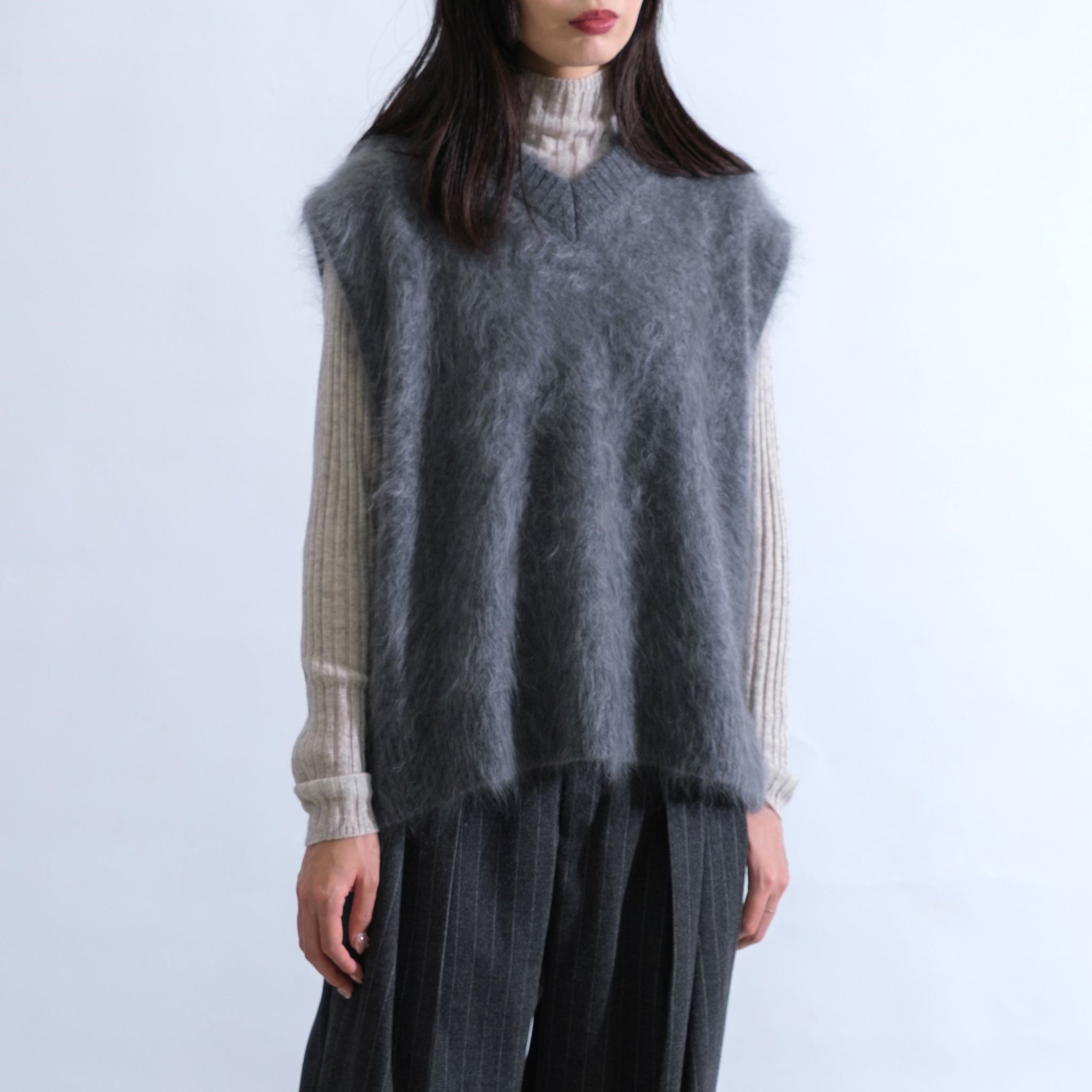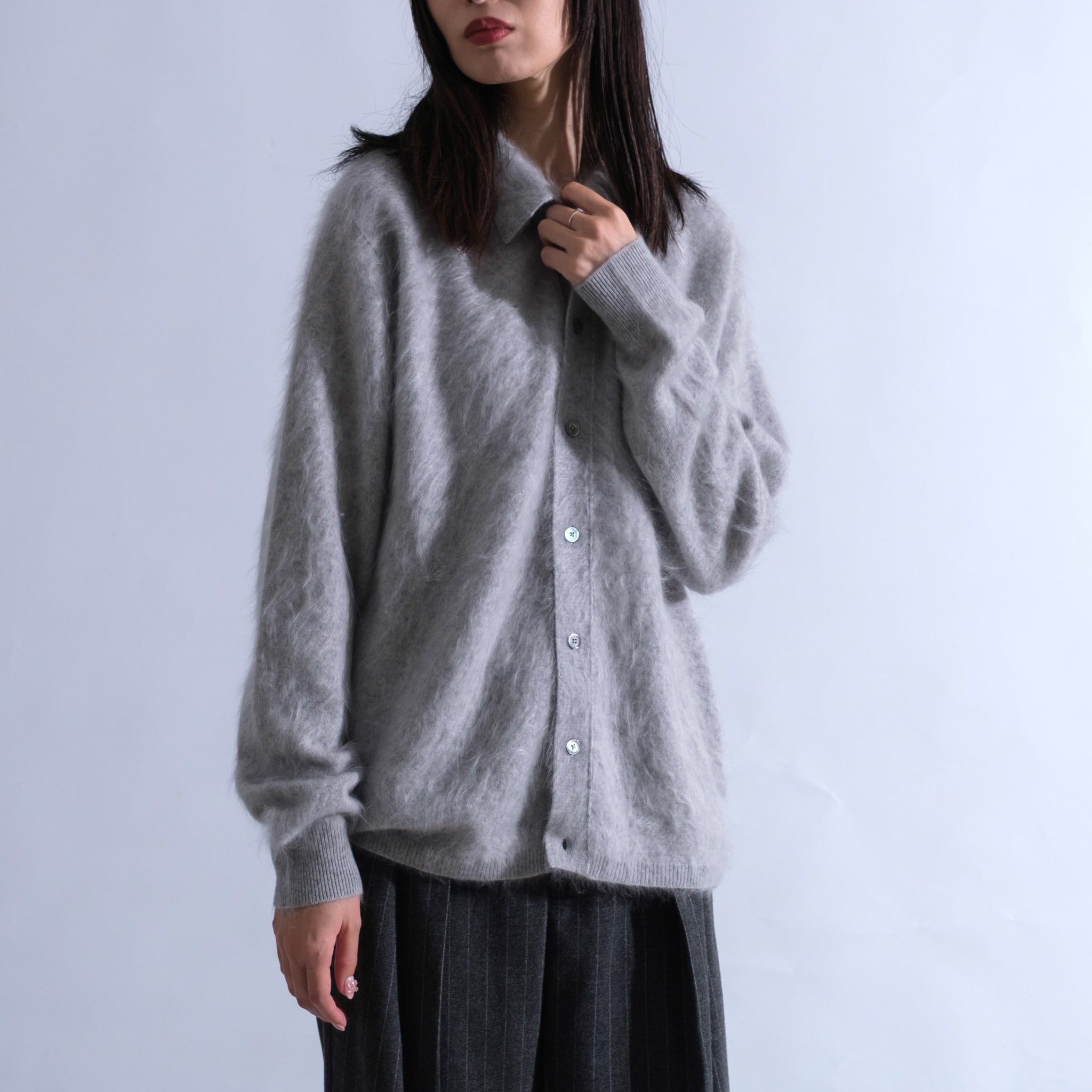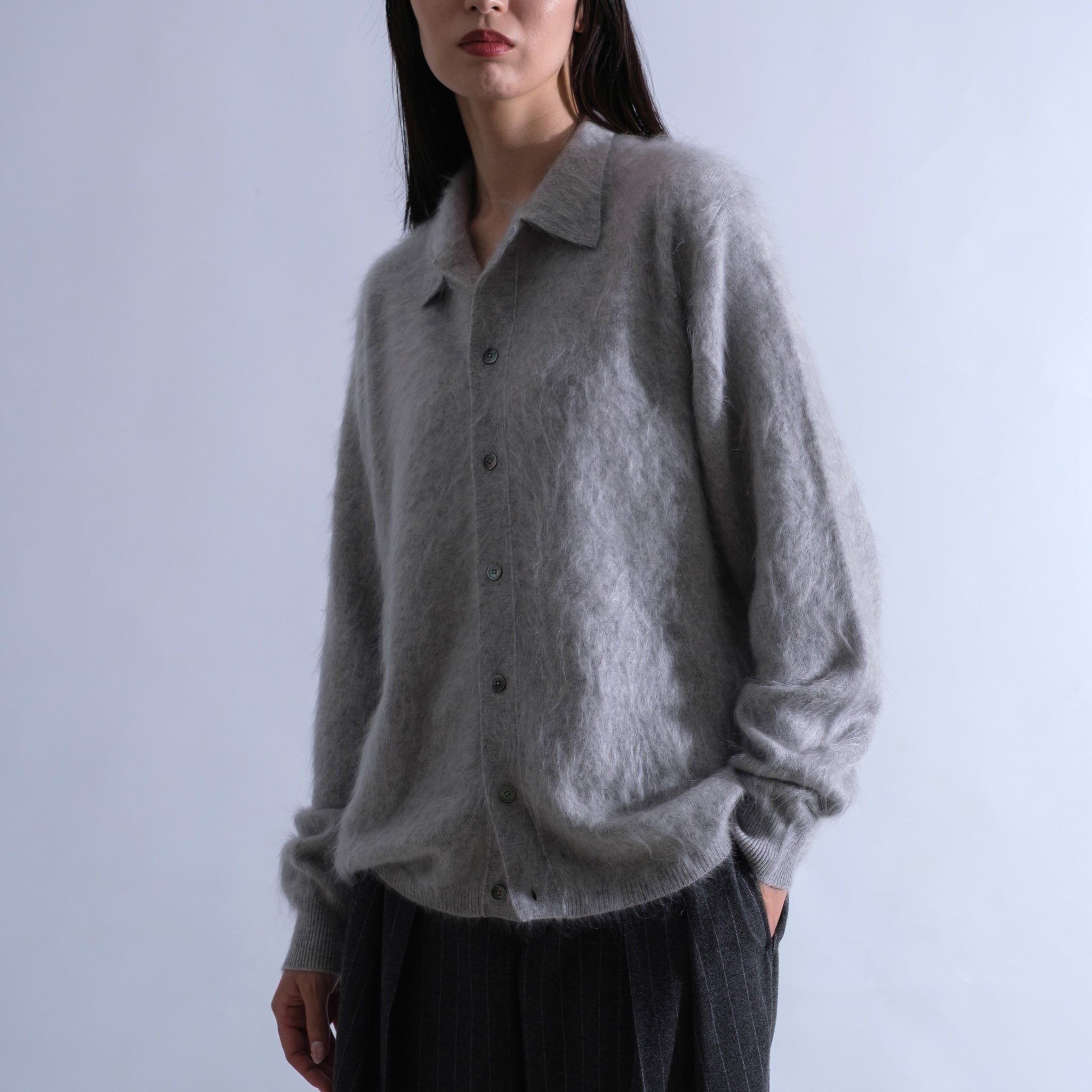 TOYOBOSHI FUR CASHMERE ― カシミヤの老舗、東洋紡糸が生み出すファーカシミヤ。毛足が長く、美しく豪華なビジュアルは独自技術の結晶。見た目以上に軽く、驚くほど暖かい着心地が、袖を通した瞬間から特別感を演出します。冬の装いに、ラグジュアリーなぬくもりを。